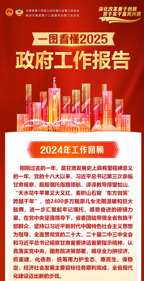 省政府工作报告明确指出,2025年,甘肃省将加快乡村全面振兴。围绕打造全国现代寒旱特色农业示范基地,培育一批产值超500亿……[详细]