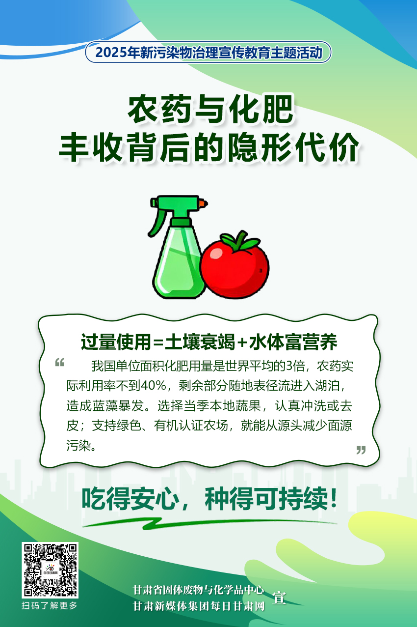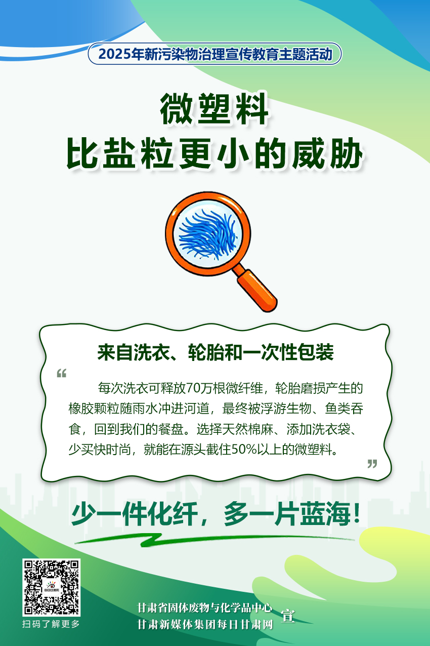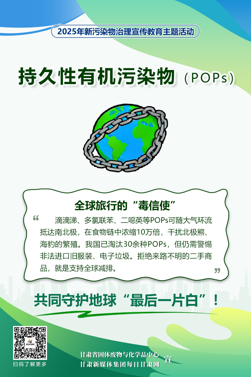 “净美甘肃 少一份新污染物 多十分安心”——2025年新污染物治理宣传教育主题活动由甘肃省固体废物与化学品中心联合甘肃新媒体集团每日甘肃网主办,面向公众、企业、学校与职能部门开展“科普+互动”系列宣教,一次看懂持久性有机污染物、微塑料、抗生素等“隐形杀手”的来源、危害与治理法规,同步展示省内试点经验与先进技术,随手参与知识挑战赛、线索举报和减排承诺,携手为新污染物做减法,为陇原绿水青山做加法。