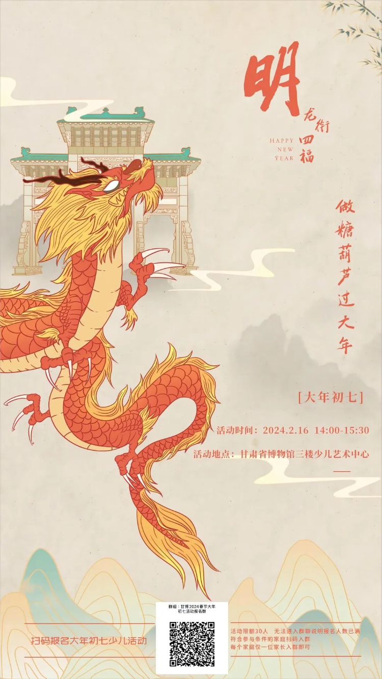 从秦朝到明代,龙年春节系列活动带您花式过大年——舞龙体验、寻宝活动、非遗灯笼制作、手作糖葫芦、棉花糖DIY... 从大年初二到大年初七,传统文化与新春年味闪耀龙年,和我们一起畅玩春节!