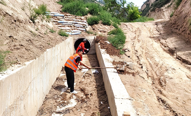 四是稳步开展隐患排查,确保辖养路段安全度汛。近期,各县区已全面进入主汛期,为进一步做好防汛减灾各项工作,各项目部一是建立健全雨前、雨中、雨后公路巡查机制,常态化坚持雨天对沿线桥隧涵、路肩边沟和临水临崖、急弯陡坡和易发生塌方、落石、泥石流等重点路段进行安全隐患排查,对水毁灾害易发路段进行重点监控,确保及时发现问题、及时处置。二是集中力量对排水不畅的边沟、涵洞和桥梁泄水孔、伸缩缝等排水设施进行清理,确保排水功能良好。三是组织人员对全线蒸发池、事故应急池、油水分离池等进行全面排查。对未设置隔离防护措施和警示提醒标识的水池进行完善补充,对公路界桩隔离栅、铁丝网封闭情况进行全面排查及整治。