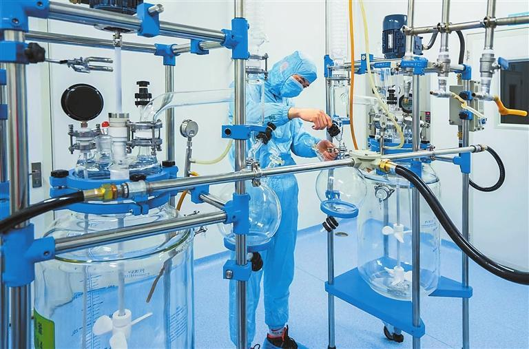 甘肃泛植制药有限公司工作人员正在进行提纯实验。 泛植制药供图