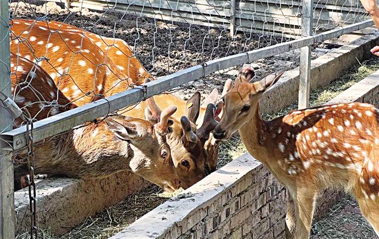 盛夏时节,在张家川回族自治县张棉驿乡先马村思齐种植养殖合作社新扩建的一栋栋干净整洁的鹿舍内,体态匀称、毛色光亮的梅花鹿或悠闲进食,或追逐嬉戏,甚是可爱。该合作社养殖员魏喜儿捧来一大堆青草走到养殖区围栏外,一只只梅花鹿听见声响立刻跑了过来。魏喜儿告诉记者:“现在正是梅花鹿生长的最好季节,需要加大饲料投喂频次。梅花鹿适应性强、不挑食,饲料成本也比较低。”