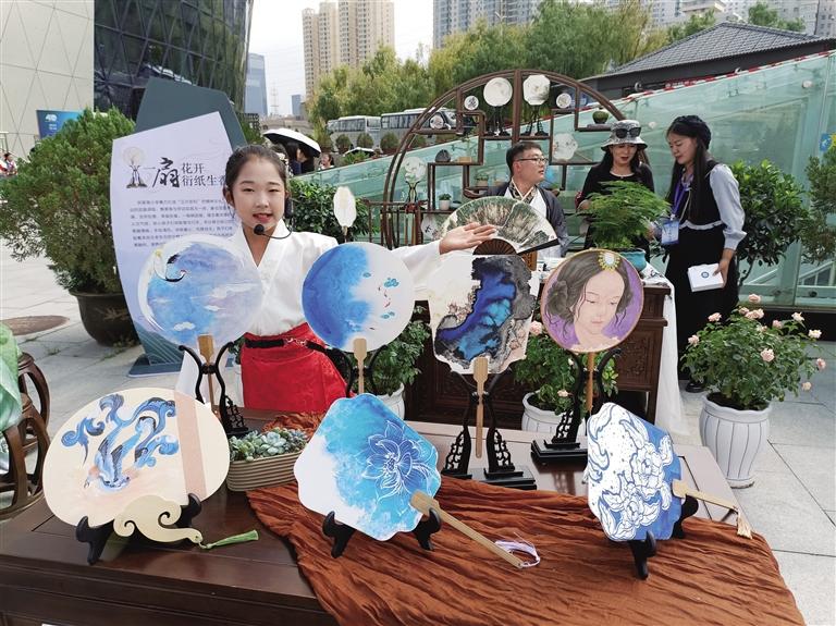 学生在艺术工坊展示自己的艺术作品。