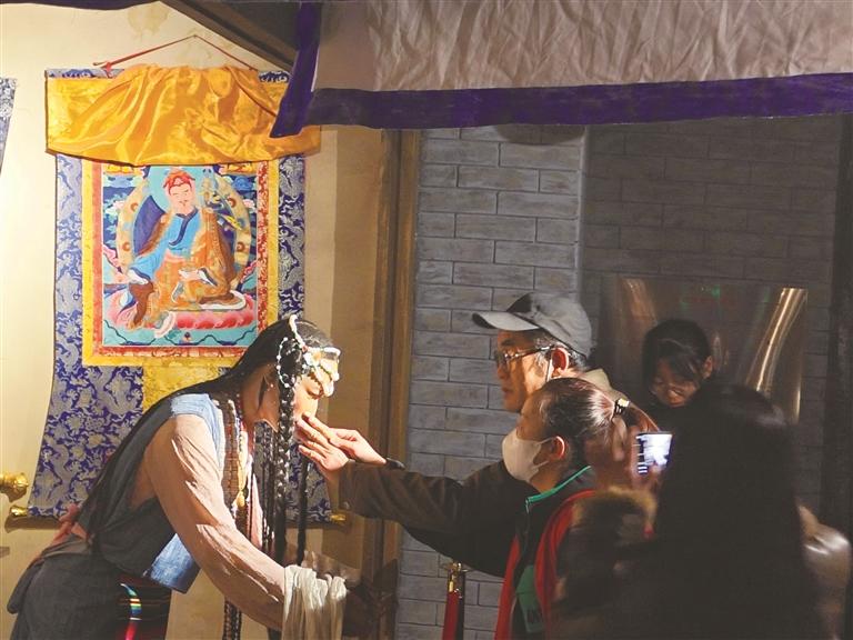 在插图艺术馆的互动区,4名幸运观众获赠试穿敦煌服饰的机会。“我一直关注着‘读者’公众号,看到今天的活动预告就立刻来参加了。”兰州文理学院汉语言文学专业的学生郭亚宁兴奋地告诉记者,“我今天体验了唐代侍女的一套服饰,妆造师给我做了专门的古代造型,很高兴能够近距离感受中华文化的魅力。”