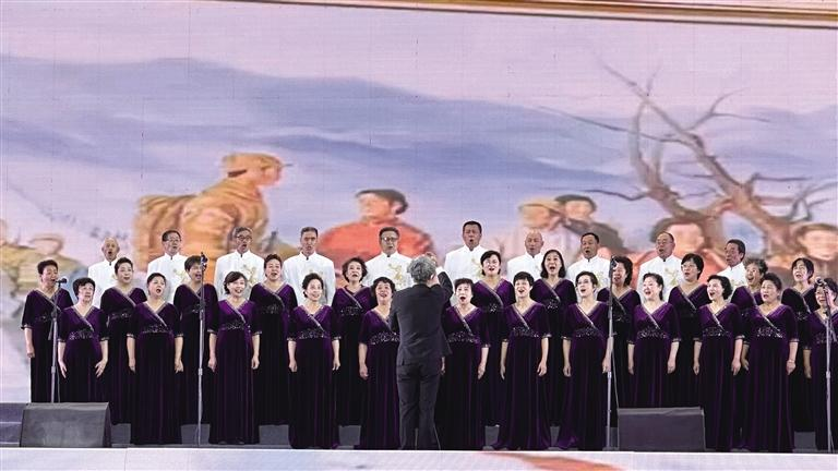 5月1日至3日每晚19时,表演在流光溢彩的灯光中准时拉开帷幕,《春色满园》《爱的画卷》《最炫民族风》等优美多姿的舞蹈轮番登场。4日晚的合唱专场更是将《我是一个兵》《保卫黄河》等经典曲目以磅礴之势唱响母亲河畔,引得现场观众频频举起手机记录精彩瞬间。