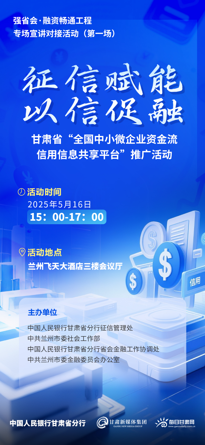 - 2025年05月14日微海报 | 甘肃省“全国中小微企业资金流信用信息共享平台”现场推广活动即将启动