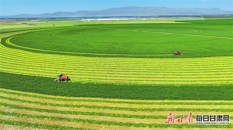 5月26日,张掖市甘州区前进牧业石岗墩苜蓿种植基地迎来紫花苜蓿头茬收获季。 新甘肃·甘肃日报通讯员 冯杰