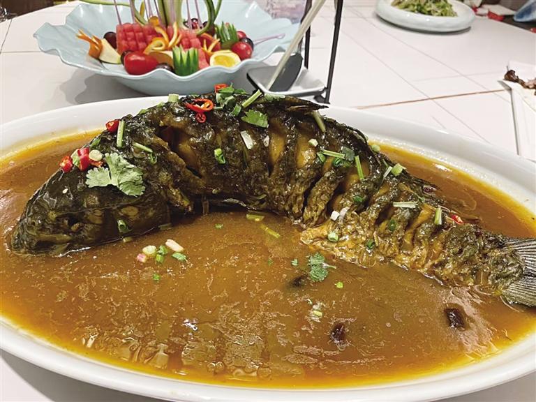 做好的红烧黄河大鲤鱼,端上桌时香气扑鼻。鱼皮完整不破,入口香脆,鱼肉则鲜嫩入味,每一口都能尝到鱼肉的细腻和汤汁的浓郁,丝毫没有土腥味。鱼腹处的肉最为肥美,轻轻一抿就化在口中,鲜美的滋味在舌尖蔓延。在夏日的餐桌上,一盘红烧黄河大鲤鱼,不仅是视觉上的享受,更是味觉上的盛宴,体现着兰州人对黄河馈赠的珍视。
