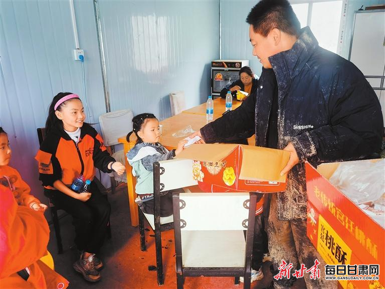 陈万凯在安置点发放物资。新甘肃·甘肃日报记者 冯宝强