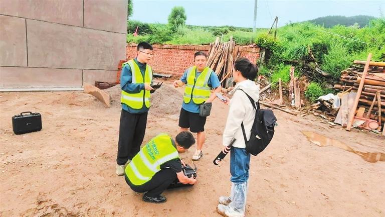 测绘青年突击队迅速赶赴灾区调查测量。