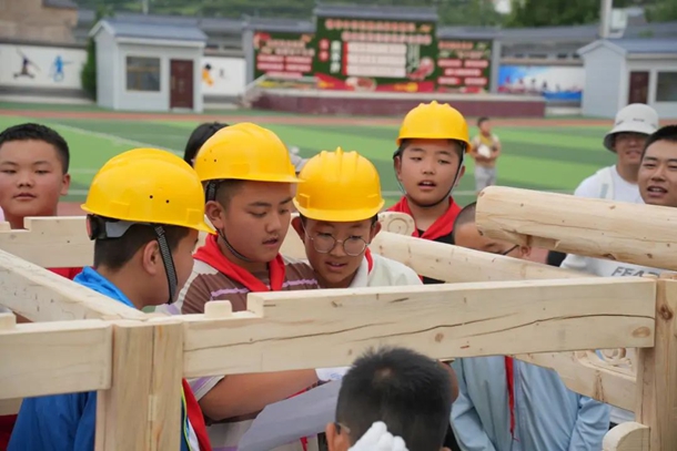 活动首先以冶力关镇中心小学为基地,开展了“校园乡土植物认知”“乡土木工”“迷你万人拔河”等结合了本地自然及文化资源的乡土教育课程,以及“情绪认知”“放飞情绪纸飞机”“团队合作之旅”等促进青少年心理健康及社交能力的课程。其中,乡土木工课由北大志愿者和本地知名木匠共同带领孩子们搭建体现洮州民居特色的木结构建筑模型,“迷你万人拔河”活动小规模模拟了临潭县重点非遗“万人扯绳”的场景和规则。这些课程充分结合地方文化资源,促进了乡村儿童对家乡文化的了解和兴趣培养。