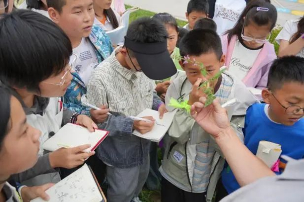 在赤壁幽谷,北京大学的志愿者带领儿童开展“植物寻宝大赛”“植物五感寻踪”等自然教育活动,山谷间回荡着孩子们清澈的笑声。这些有趣的体验活动让孩子们在“玩中学、学中玩”。