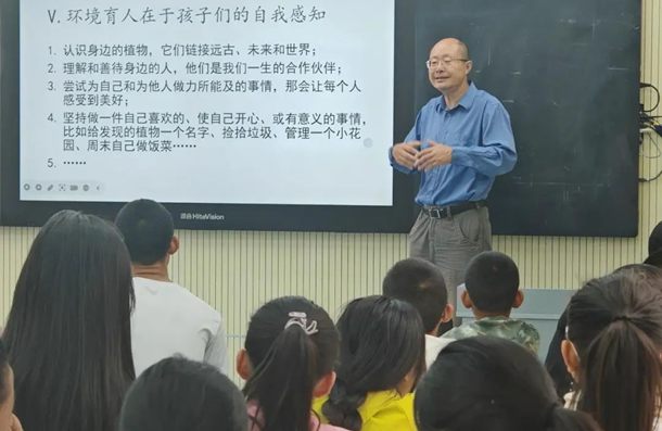 另外,夏令营还组织了亲子讲座等家校交流活动。北京大学建筑与景观设计学院副院长李迪华副教授开展了题为“环境育人”:乡村教育的独特优势和学生参与途径的精彩讲座。李教授结合个人成长及教学经历,向在场的学生和家长们生动阐释了乡村环境“绝不雷同”的美及乡村环境蕴含的育人价值。