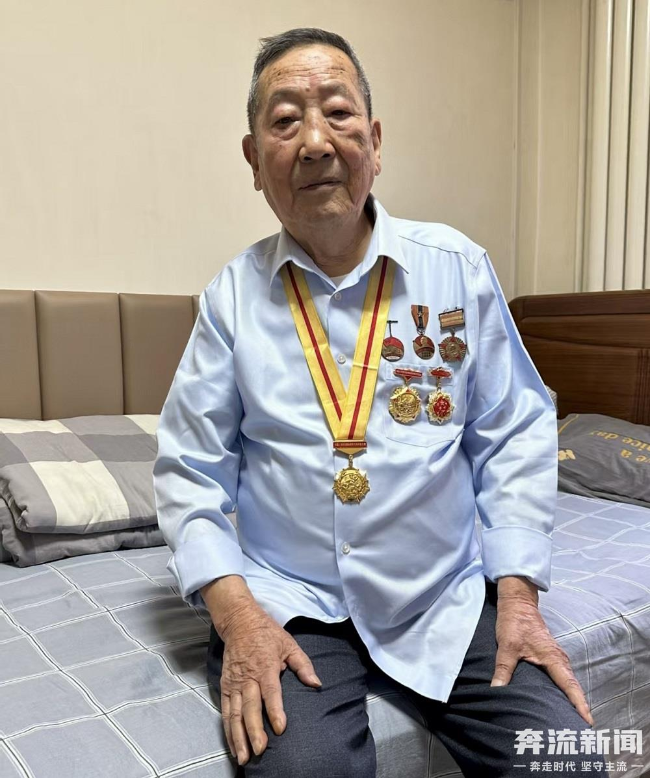 8月28日,窗外秋雨淅沥,李三顺老人坐在床边,穿着清爽的淡蓝色衬衫,胸前的荣誉勋章熠熠生辉。虽已90岁高龄,但老人耳不聋,眼不花,讲话语气温和,思路清晰。