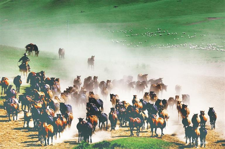 盛夏时节,走进山丹马场,放眼望去,水草丰茂,骏马奔腾。