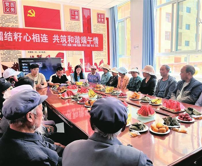 积石山县吹麻滩镇开展“粽情端午 同心石榴”睦邻活动。