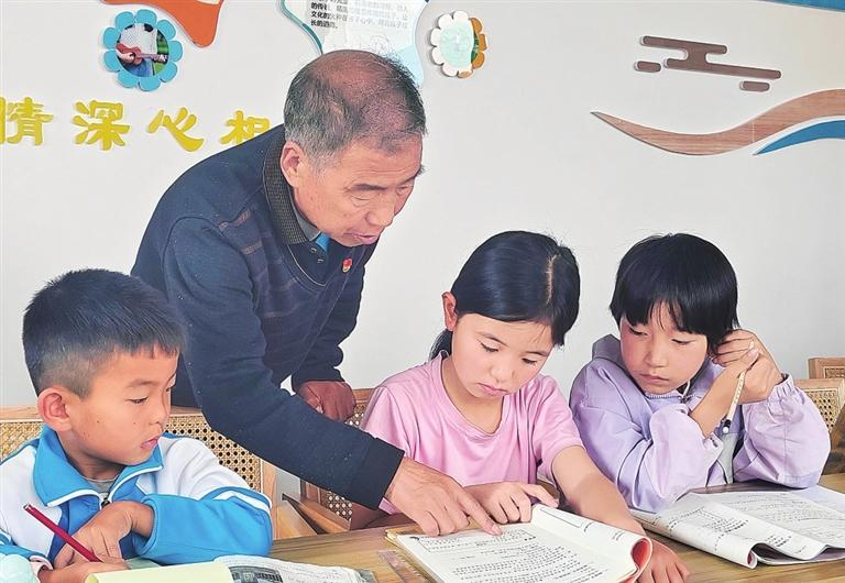 吹麻滩镇盛世社区退休教师为孩子们进行学习辅导。