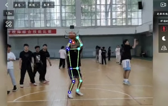 活动中,通过动作识别软件捕捉动作、采集数据,结合视频信息进行标准动作比对矫正,学生完成标准投篮动作(如肩上投篮)的标准化数据采集后,通过人体姿态识别训练模型,标注关键关节(肘部、腕部、膝盖)角度、动作连贯性等参数,由专业指导教师提出矫正建议,确保动作标准、发力准确。