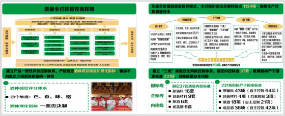 从每一粒饱满的高粱、小麦入厂,到在百年窖池中发酵,再到经验丰富的酿酒师“看花摘酒”,最后经国家级评酒委员会品评定级……每一个细节都凝聚着金徽人对品质的敬畏。据了解,实施价值链全流程质量管控的金徽酒,从前端设计研发到终端售后管理,需要精准识别“1134”个质量控制点。