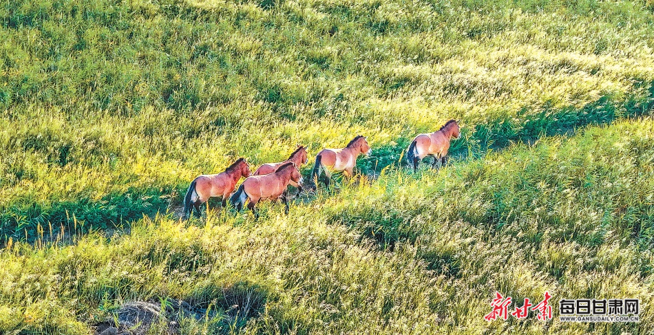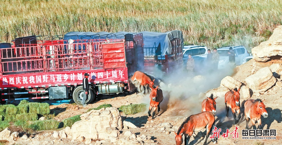 普氏野马被放归甘肃敦煌西湖国家级自然保护区核心区大马迷兔区域。