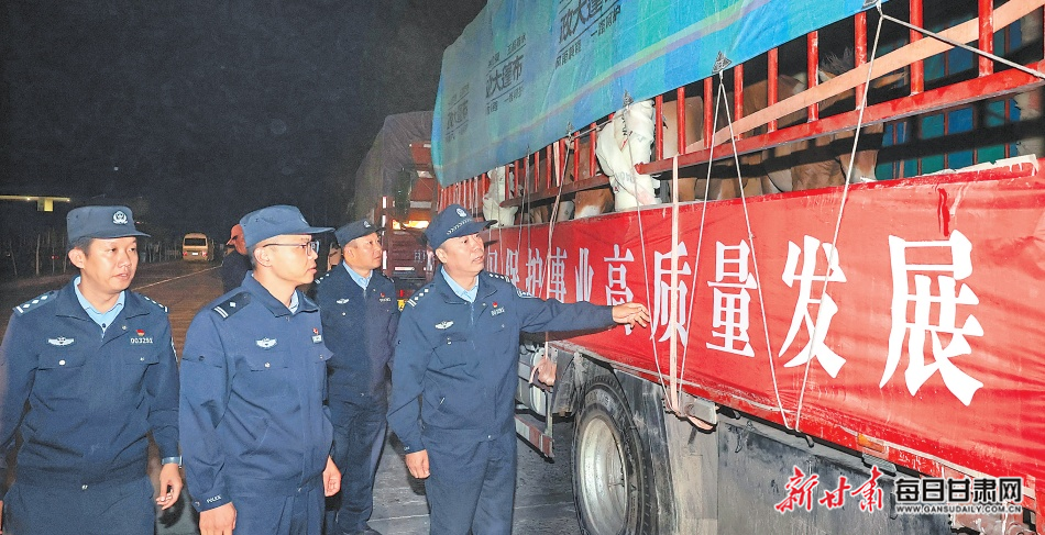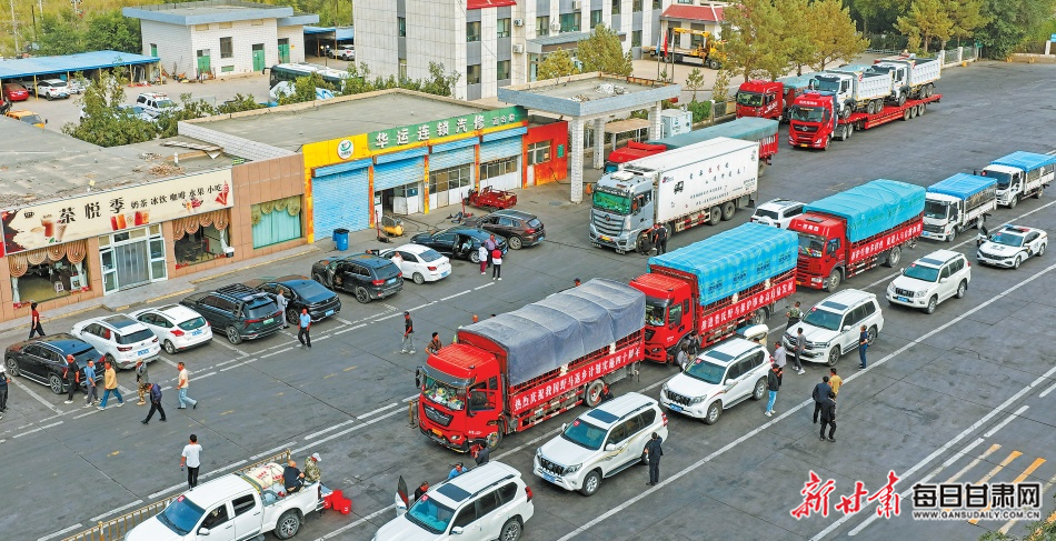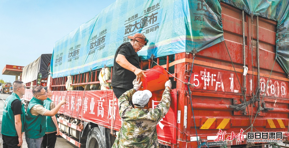 运输保障车队抵达连霍高速高台服务区进行补给。