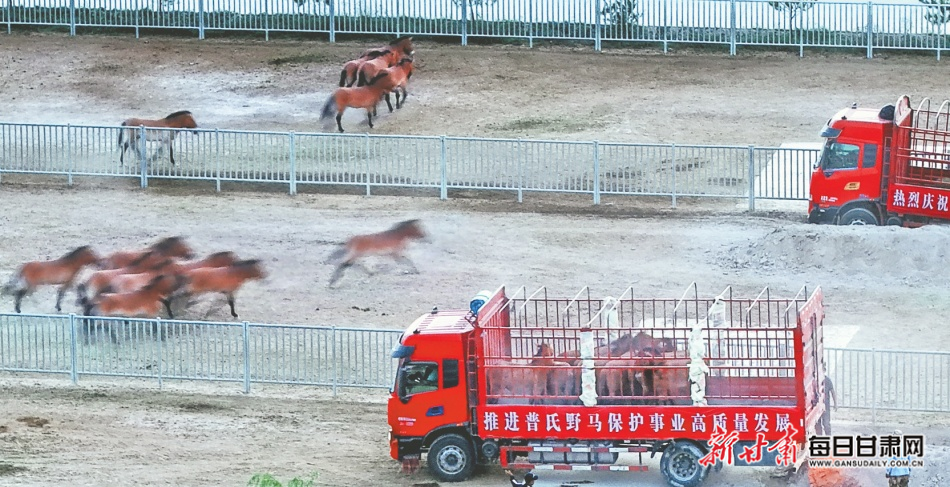 普氏野马抵达甘肃敦煌西湖国家级自然保护区。