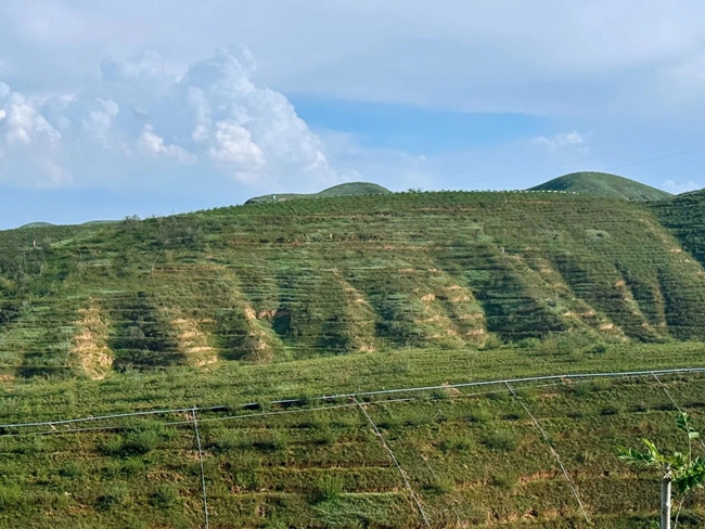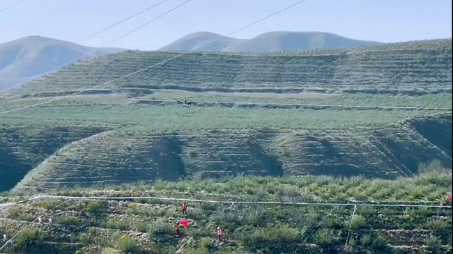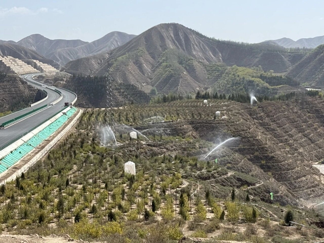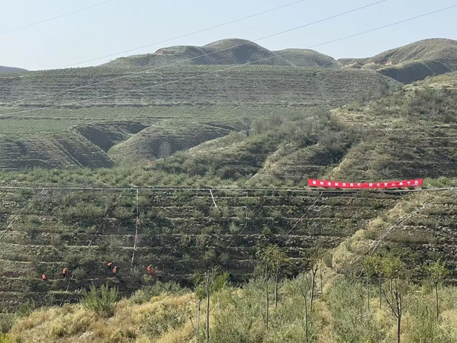 “三分栽,七分管。”造林不易,护绿更难。唯有精耕细作、久久为功,方能守住来之不易的绿色成果。为此,集团公司专门成立两山绿化管护专班,构建覆盖“栽—管—养—护”全生命周期的闭环管理体系。从墒情监测到围堰修整,从扶苗正形到摸芽修枝,从病虫害防治到越冬保温,每一项管护措施均细化到人、责任到岗,做到“一树一人、一区一责”。集团公司加快推进配套管网建设,截至2025年9月底,完成管网铺设454亩,总长度突破1.65万米,提前超额完成年度建设任务,为新植苗木提供了稳定可靠的水源支撑。与此同时,积极引入现代化手段赋能生态保护,利用无人机吊运苗木,破解陡坡运输难题。