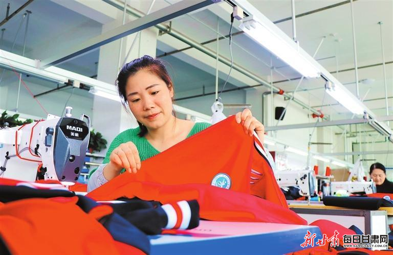 工人在静宁县城关镇南关村乡村就业帮扶车间赶制服装。新甘肃·甘肃日报通讯员 王毅