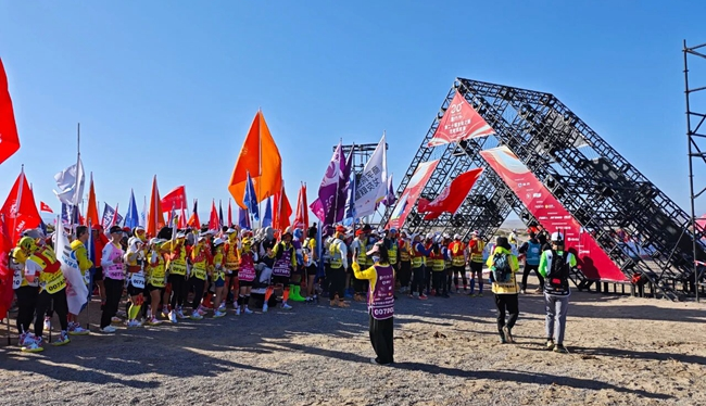 国庆当天,第二十届玄奘之路戈壁挑战赛(简称“戈赛”)在世界文化遗产地——省公交建集团运营的瓜州县锁阳城遗址景区正式开赛。赛事为期4天,赛程共计121公里,共有来自境内外65所高校的5000名选手参赛。