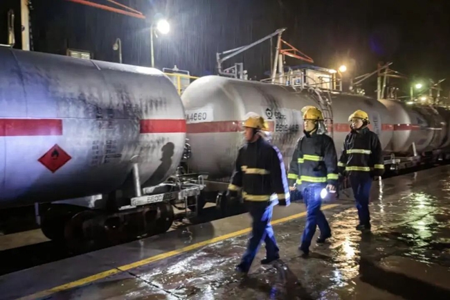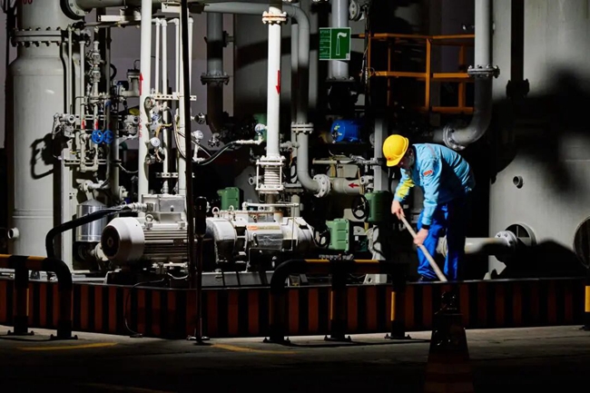 凌晨两点,韩师傅穿行于油罐区、铁路栈桥,开展夜间安全巡检。“越是夜深,越不能松懈。”