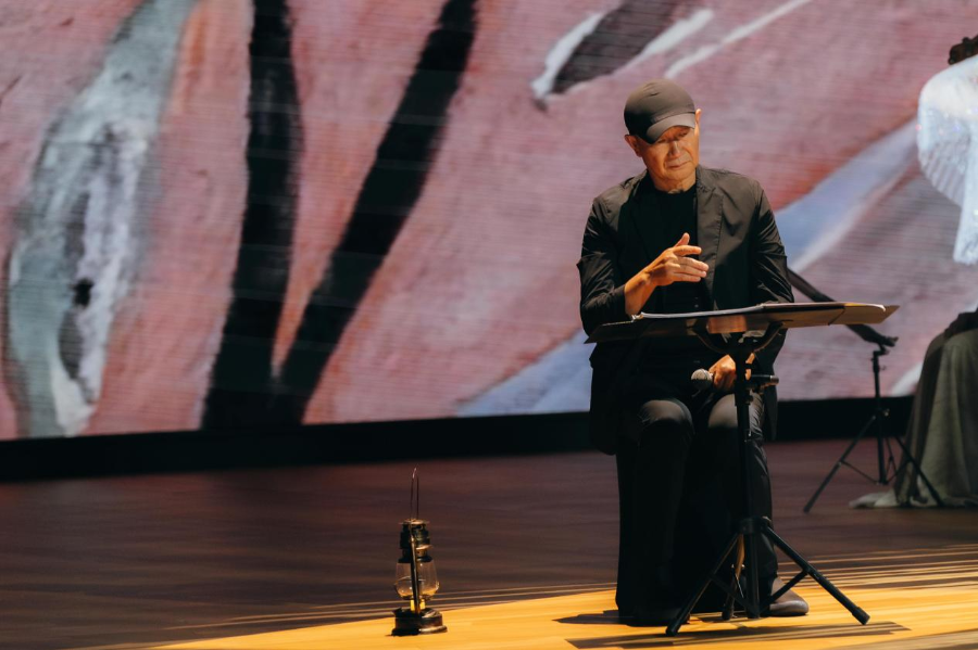 演出随着谭盾的手势拉开帷幕。《长沙女引》《箜篌引》等唐代古曲次第响起。当筚篥的苍凉与尺八的空灵交织,配合多媒体投射的敦煌壁画动态影像,讲述与叙事的演奏方式带来的远不止听觉上的享受,更像是一场文化寻根之旅。
