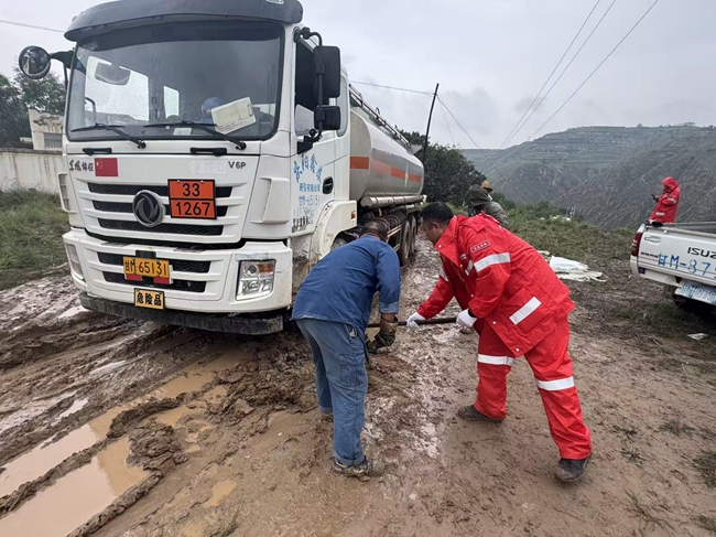 面对汛情,该厂各基层单位纷纷组建抢险突击队,采取“分片承包、责任到人”的作战模式。其中,方山作业区累计投入60人次,组织道路抢险35次,成功拉运原油1900余方;太白梁作业区完成合51拉油点70%路段碎石铺垫以及镇281-53井场防滑层铺设,桐川作业区干部员工日均徒步巡井里程累计超过100公里……这些数字背后,是镇原油田石油人在雨中坚定的身影。