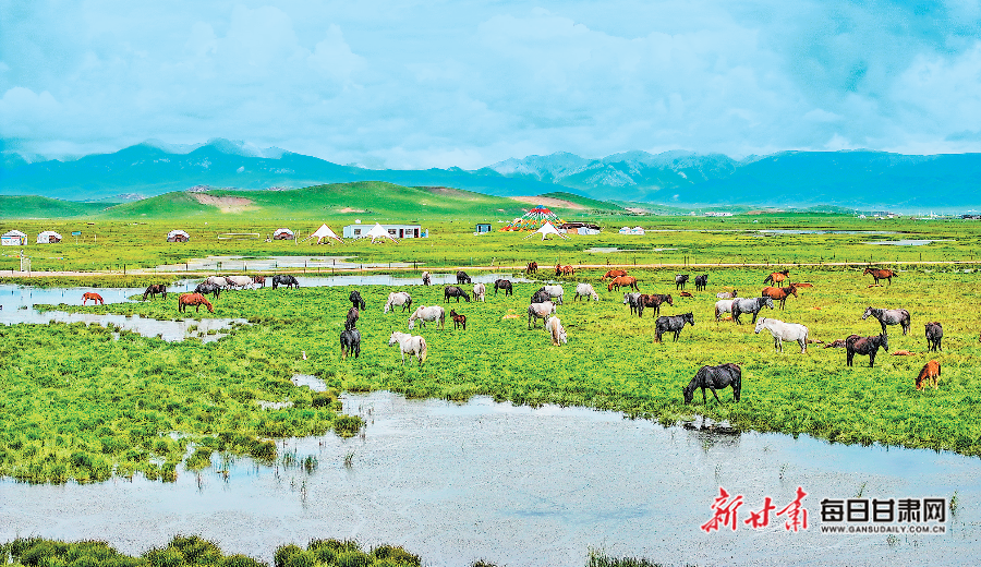 蓝天白云下的玛曲县河曲马场风光旖旎。(资料图) 新甘肃·甘肃日报记者 田蹊