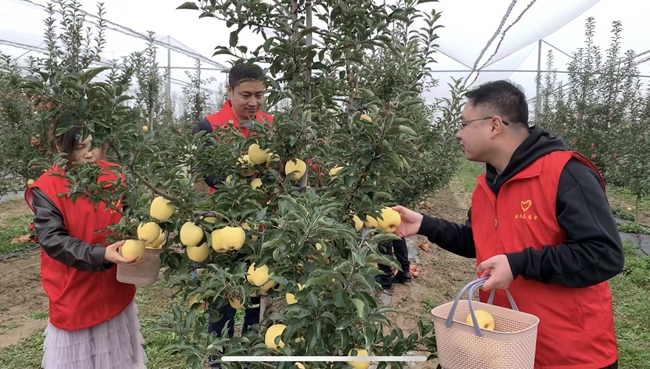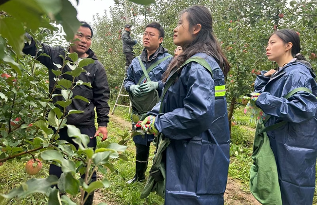 “快!趁着这会儿没雨,先把树下的落果捡了,再摘向阳面的熟果!”10月14日清晨,合水县老城镇赵塬村的苹果园里,驻村工作队队员踩着泥泞的田埂,一边分发手套,一边给队员们分工。这支由镇村两级干部、党员志愿者组成的队伍,正忙着采摘、分拣、装箱,红彤彤的苹果在筐中码放整齐,村民赵世满看着忙碌的身影,感激地说:“这几天天气阴晴不定,苹果采摘不下来很发愁,镇村干部来帮忙,摘得又快又细,真帮了大忙!”