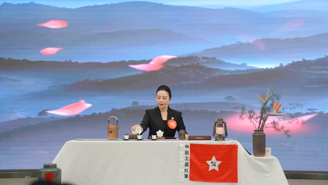 在职工组比赛中,甘肃建筑职业技术学院教师以“传承丝路茶技,弘扬陇原茶韵”为主题,不仅展现出教育者的专业涵养,更以精湛茶艺成为传统文化的践行者与传播者。经过理论考核、规定茶艺、茶汤质量比拼、自创茶艺等多轮竞技,解丹妮老师荣获二等奖,王向华、骆雯老师获三等奖。尤为可喜的是,三位老师因表现卓越,被授予“省级技术标兵”荣誉称号。