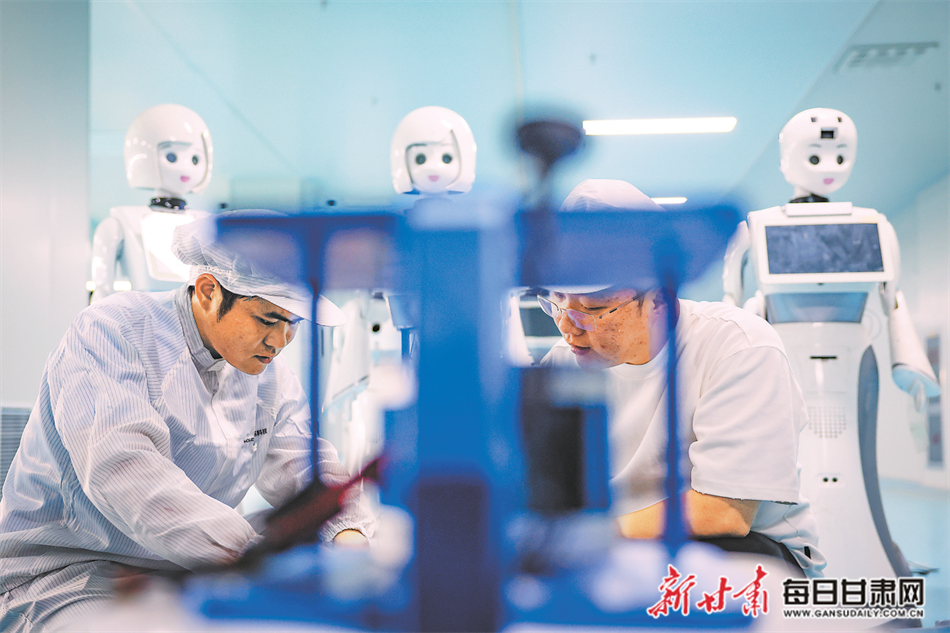 浙江恒东智能科技有限公司生产车间内,工作人员正在组装智能机器人。
