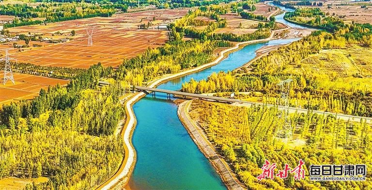 近日拍摄的临泽县北部的“三北”防护林。 新甘肃·甘肃日报通讯员 王将