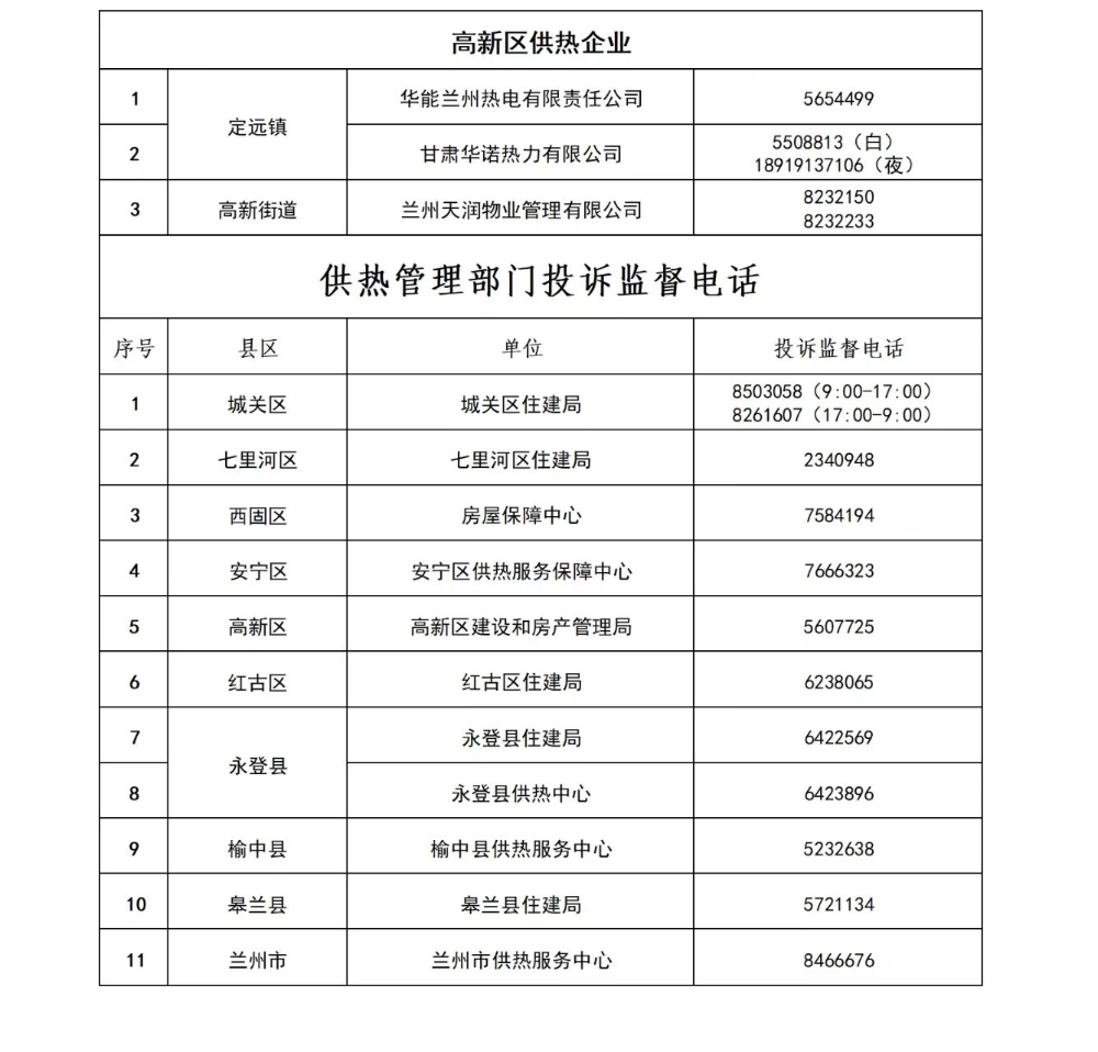 兰州市2025-2026年采暖期供热投诉监督电话公布