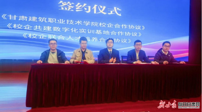 大会期间,还举行了产教融合项目签约仪式与捐赠仪式,将产教融合的合作意向转化为具体行动。甘肃建筑职业技术学院建筑工程学院、测绘地理信息学院负责人分别与共同体成员企业代表签订合作协议。