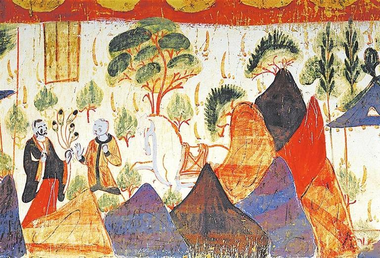 宋代词人刘克庄在写重阳词作《贺新郎·九日》中写道:“若对黄花孤负酒,怕黄花、也笑人岑寂。鸿北去,日西匿。”意思是说在重阳节这天,若不能饮甘甜醇美的菊花酒,恐怕连菊花也会嘲笑人的孤寂了。抬头只见鸿雁北飞去,斜阳西沉。词句充满了夕阳西下仿若人生之暮年的感慨喟叹,也充满着“夕阳无限好”的豪迈。汉字“崇”字,本义为“以山为宗”。《礼记·祭法》中说:“山林川谷丘陵,能出云,为风雨,见怪物,皆曰神。”古人对高山充满了敬畏与崇拜。早在春秋战国时期,民间就有“登山祈福”的习俗。至唐宋,“重阳节”也被称作“登高节”。唐代诗人王维在诗作《九月九日忆山东兄弟》中就写道:“独在异乡为异客,每逢佳节倍思亲。遥知兄弟登高处,遍插茱萸少一人。”这里写到了在重阳节家中的儿女会身佩茱萸登高为家中老人祈福长寿的习俗。在莫高窟第431窟的“山中冥想图”、第428窟的“山林出行图”等壁画,都表现了人们奔赴自然、寄情山林的愿望。重阳时节,天高云淡、山明水秀、寥廓澄澈,正可谓“我言秋日胜春朝”,是适宜老人户外活动的时节。