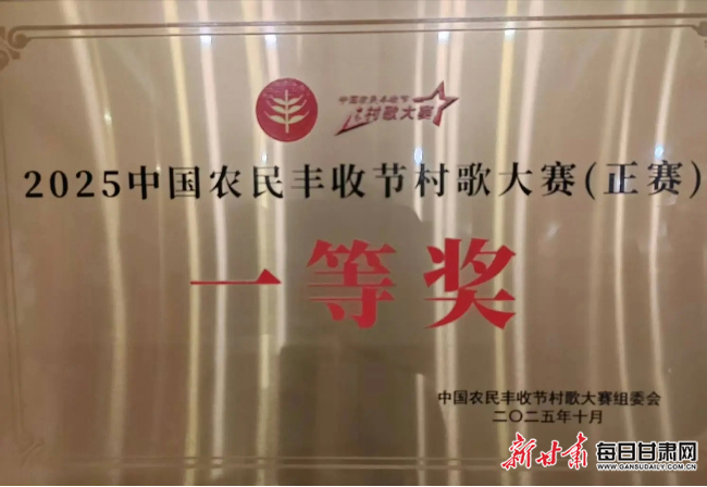 新甘肃客户端平凉讯(新甘肃·甘肃日报记者 田丽媛)10月25日,在贵州省剑河县举办的2025中国农民丰收节村歌大赛总决赛上,平凉市崇信县选送的原创村歌《农民的日子美扎了》表现优异,以96.91的高分勇夺全国一等奖及“优秀词曲奖”,成为我省唯一晋级总决赛并获奖的节目。