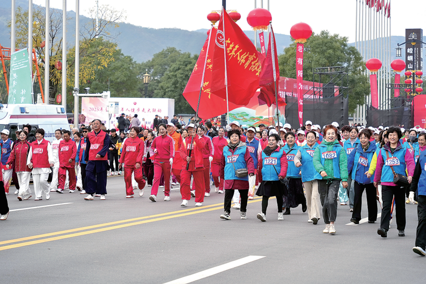 10月29日,选手们从起点出发。当日,甘肃省2025年“九九重阳”全民健身主题活动(甘肃主会场)启动仪式暨平凉市第四届老年人运动会健步走活动在崆峒古镇举行。