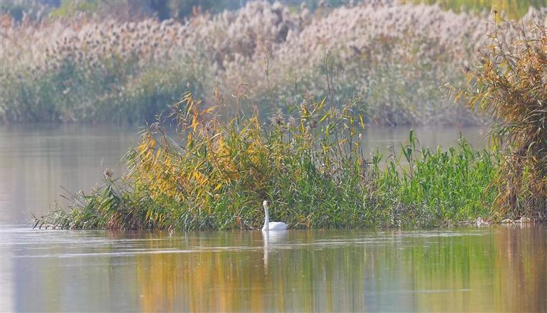 与大天鹅同期“赴约”的,还有白鹭、鸬鹚、渔鸥、苍鹭等水鸟。它们或在湿地翩翩起舞,或于水面静谧栖息,或沿河岸悠闲觅食,为深秋的黄河增添了勃勃生机。