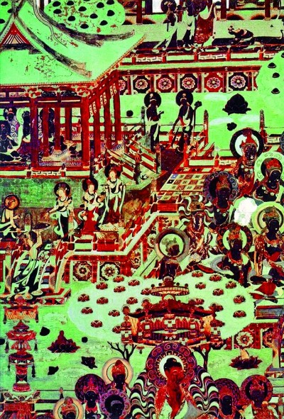 敦煌壁画多青绿。这是绘画艺术传统与表现内容的完美结合,是现实物质条件同艺术理想的完美结合,是美好生活愿景同艺术表达的完美结合。