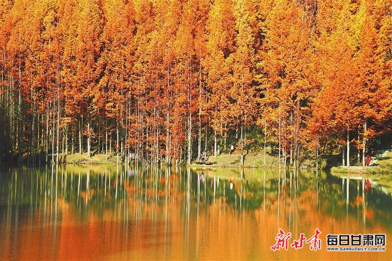 近日,游客在两当县兴化乡水杉林间游玩赏景。新甘肃·甘肃日报通讯员 李旭春