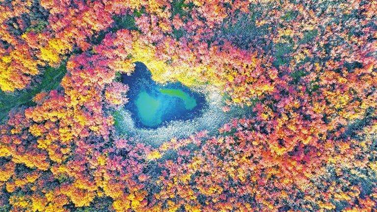 晚秋时节,新区秦王川国家湿地公园宛如大自然铺展的“调色盘”。秋风拂过,将湿地晕染成斑斓的画卷——金黄、橙红、深褐与碧色交织,如诗如画。图为湿地公园美丽“心湖”。兰州新区报记者罗晋业 摄