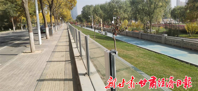 深秋时节,兰州百里黄河风情线景色宜人,新建成的黄河防浪墙在阳光下熠熠生辉。晨练市民赞叹道:“住在兰州,常在黄河边散步,越来越安全了!”