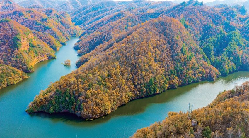近日,庄浪县云崖寺国家森林公园色彩斑斓,湖面清澈明净,绘就了一幅生态美景画卷。 黄蔚林 摄