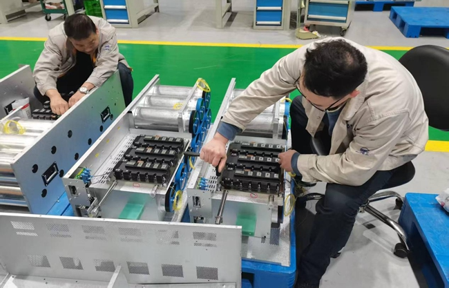 自项目启动以来,公司克服原材料供应紧张、工艺流程复杂,技术要求严苛等多重挑战,通过优化生产流程、细化任务分工,有效提升生产效率。该项目包含102面柜体、202个功率模块、85个制动单元,目前第一批生产已顺利结束,第二批和第三批核心器件装配及配线进度已完成80%,关键节点任务均按计划有序推进。