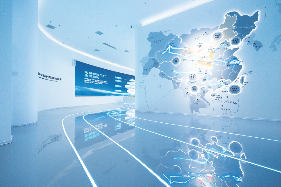 走进位于凉州工业园区的稻盛云(武威)智算中心展示大厅,浓浓的科技感扑面而来。寓意“数据流”的多条参观灯带在地面上交织,将占地2000多平方米的区域连在一起。位于展厅中心的智能化沙盘,立体展现了稻盛云(武威)智算中心园区全貌和4栋高性能智算楼的准确位置。